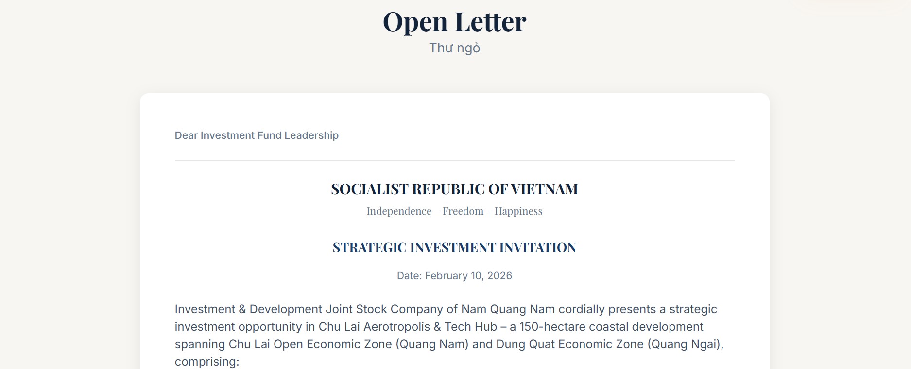 CHU LAI PROJECT FOR CAPITAL FUND