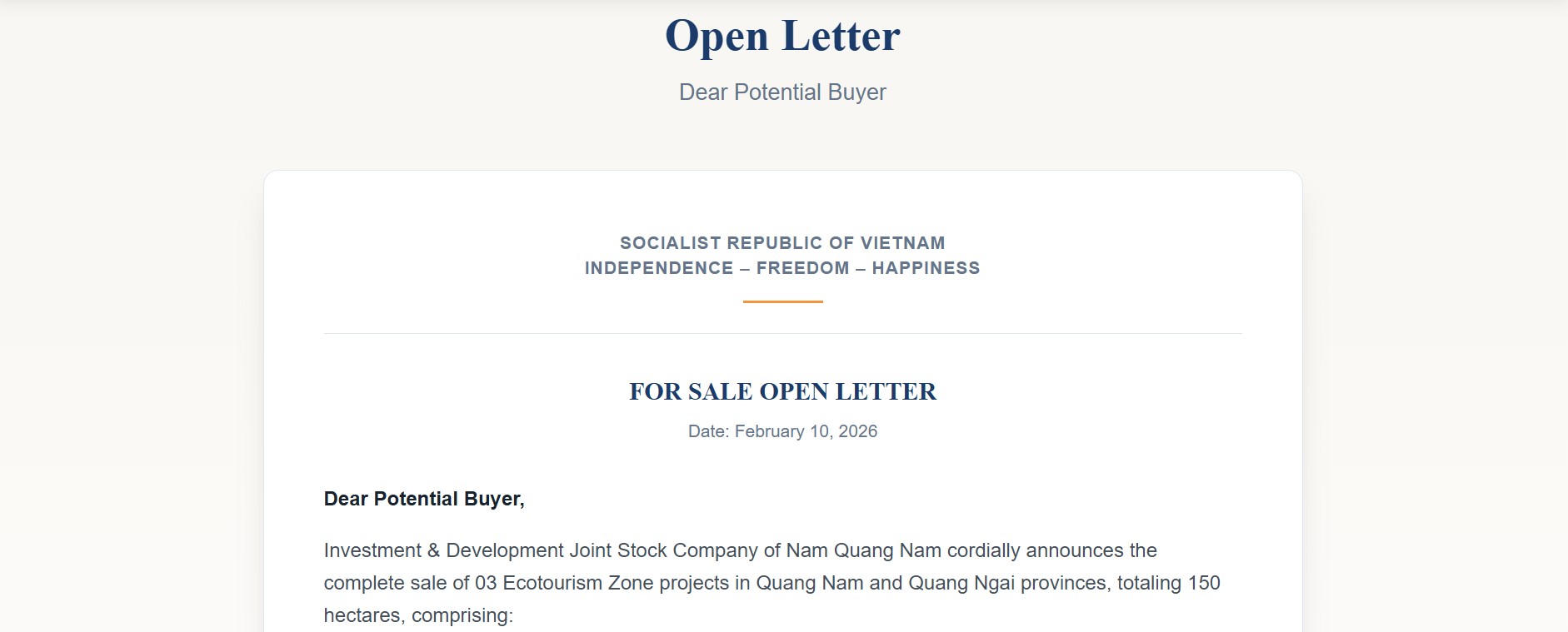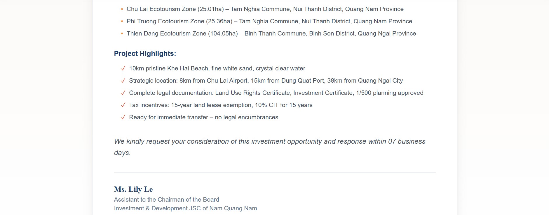 CHU LAI PROJECT FOR SALES